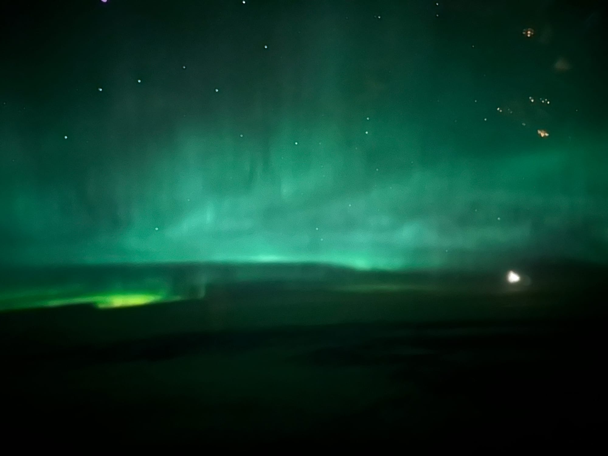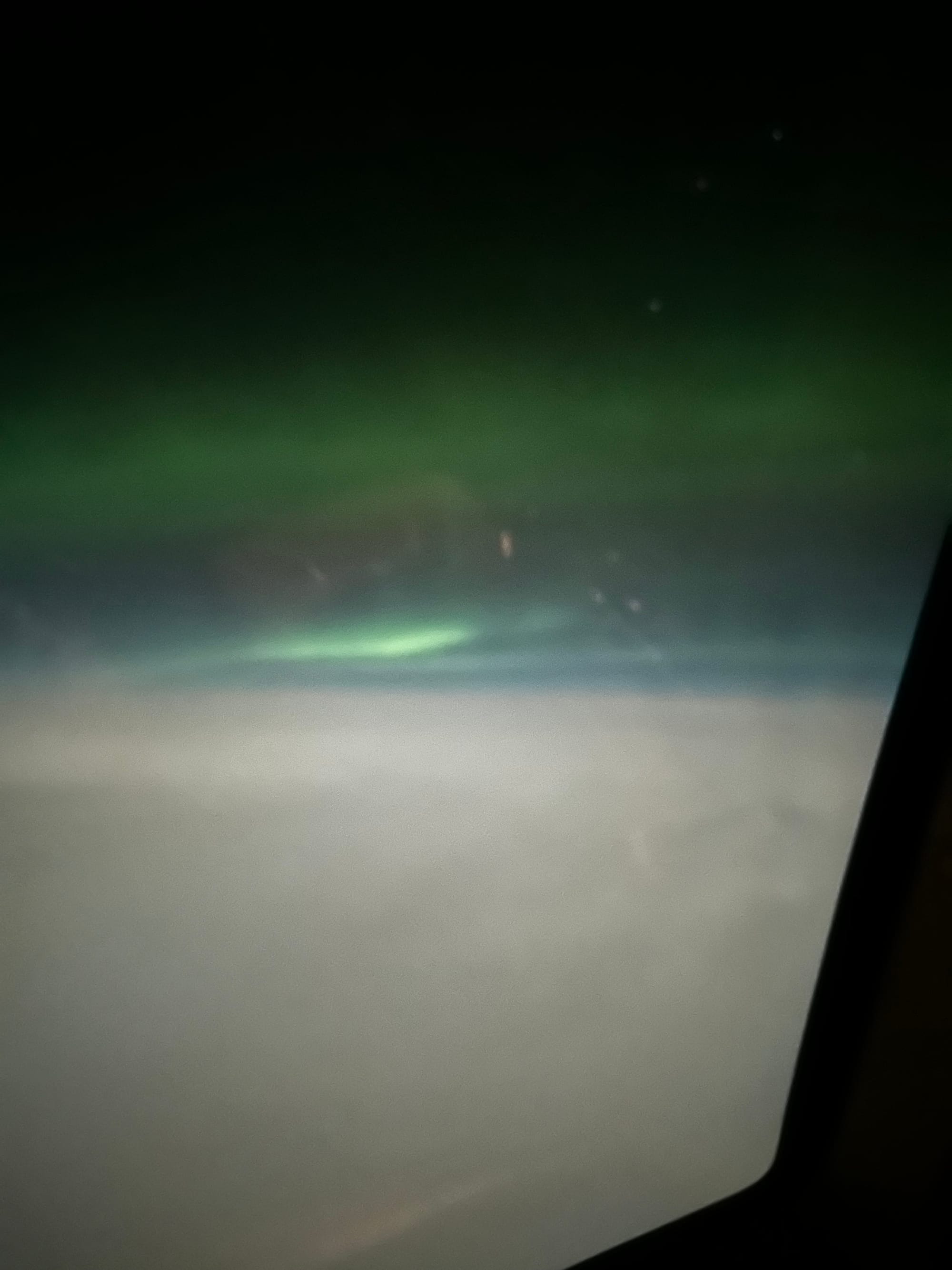 While it’s fun to nerd out over what causes the aurora, I wonder if this is how lore and myths are formed. I can’t help but think about my Swedish ancestors from way up north (like, we’re talking damn near the Artic Circle, not tropical Stockholm) seeing this, what stories they could’ve conjured up to explain such a marvel in the sky. As I was glued to the window, listening to the crew brief their descent and approach plans, I watched the lights move with an eerie but marvelous flow— some looking like a column, perhaps a portal to another realm, others looking as close as a few miles away. It was yet another reflection imbued by flying that we’re mere specks of cosmic dust in a meaningless abyss, and that I, too, can dance like the light within me. If you’re groaning by how cheesy that was, then I’ve done my job.