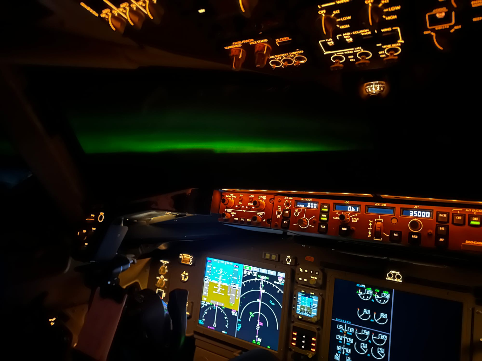 I didn’t really think much more about it, unless I saw pictures online. I would scroll past them quickly, because I wanted to experience it for myself and not just see images. Back to this past November, I still wasn’t thinking about it. But we were finishing a long flight from Seoul to Anchorage, and I took the last rest break. Awaking from my nap, I danced in the galley while I heated up my dinner and ate right there— sometimes it’s nice to stretch my legs and ponder existentialism over high sodium meals, but I digress. I came back to the flight deck to change back into my uniform (what?! I’m a freight dawg; of course I change the second we get to altitude), but I was dazzled by what I saw out the windscreen.